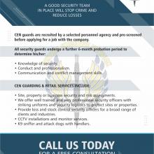 Let us secure and protect the things that matter most to you. Since 2008 we’ve made a measurable impact in the private security industry, working around the globe, securing and protecting clients ‘personnel, assets and critical infrastructures. Our guarding services are thorough in every way and our security officers stand out from competitors - not only on appearance - but more importantly – on service delivery. We ensure the correct guarding provision is put in place, by conducting free of charge, a security review on your current security process. A dedicated team to add value, reduce risk and to enhance professionalism and efficiency manages each client site.