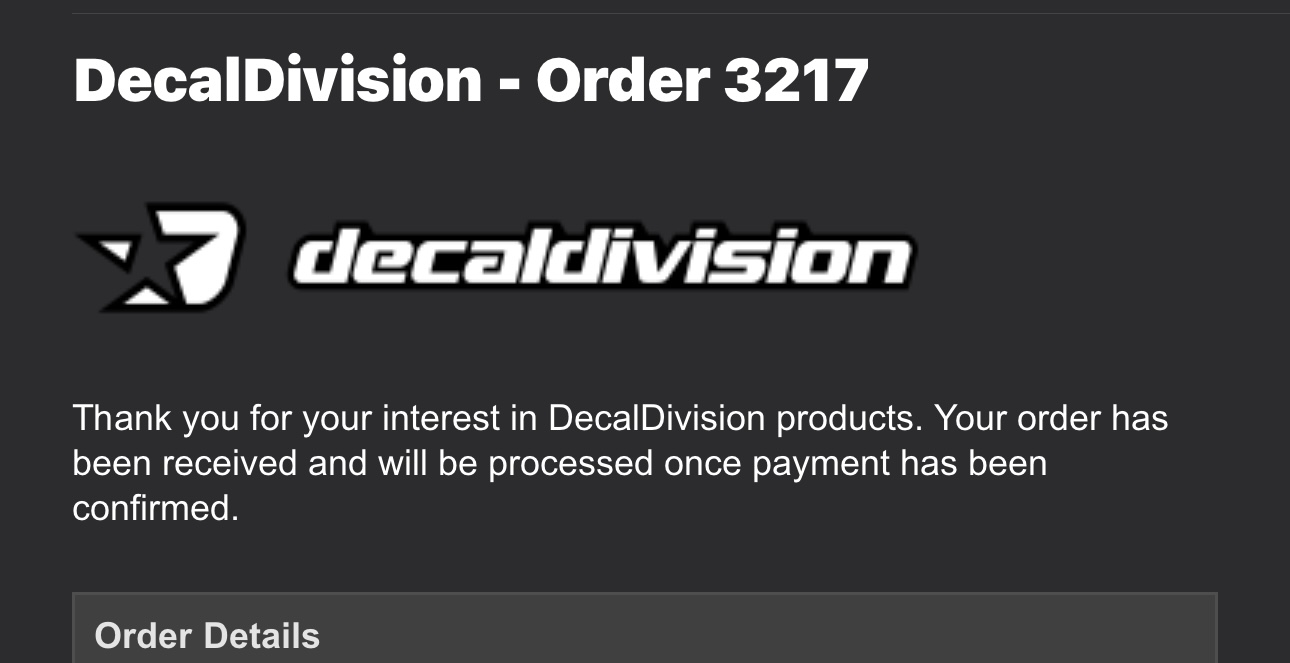 I placed an online order with Decal Division a week ago and they have not responded to any of my messages despite multiple attempts to contact them.